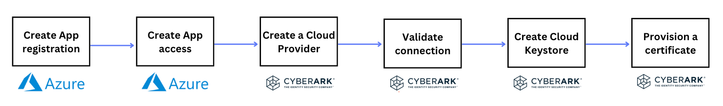 The following diagram illustrates the high-level steps for integrating Certificate Manager - SaaS with Azure Key Vault (AKV). In the subsequent sections, we dive into each of these steps, providing you with a guided walkthrough.